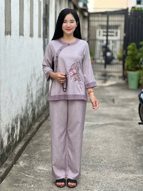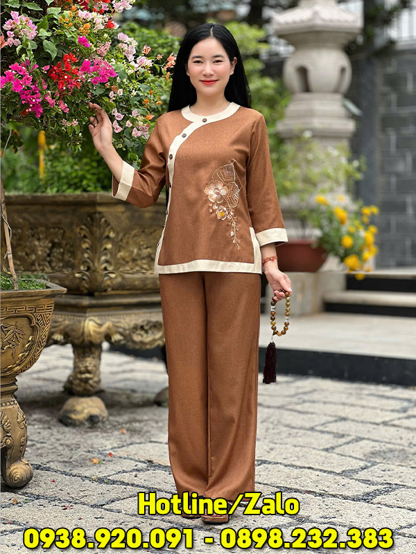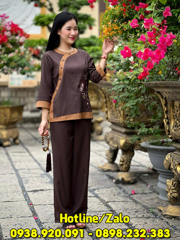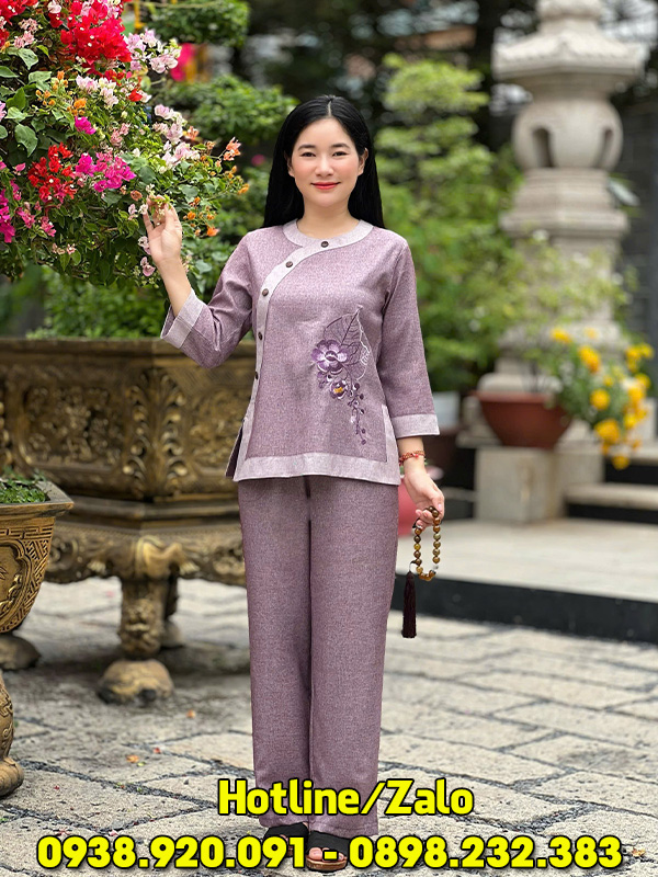 Đây là hình ảnh đồ lam đi chùa nữ, quần áo Phật tử nữ bạn có thể tham khảo